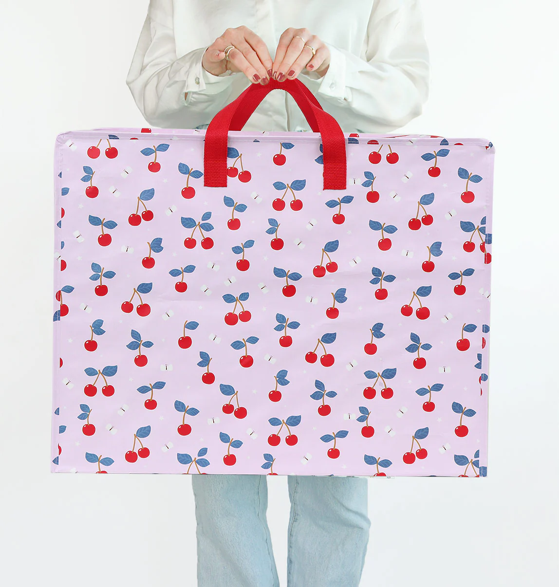 Kinderkamer opruimen? Deze handige opbergtas van A Lovely Little Company met vrolijke kersen print is ideaal voor het opbergen van speelgoed, kleding of linnengoed. De opbergtas heeft een rits en is gemaakt van gerecyclede pet flessen.