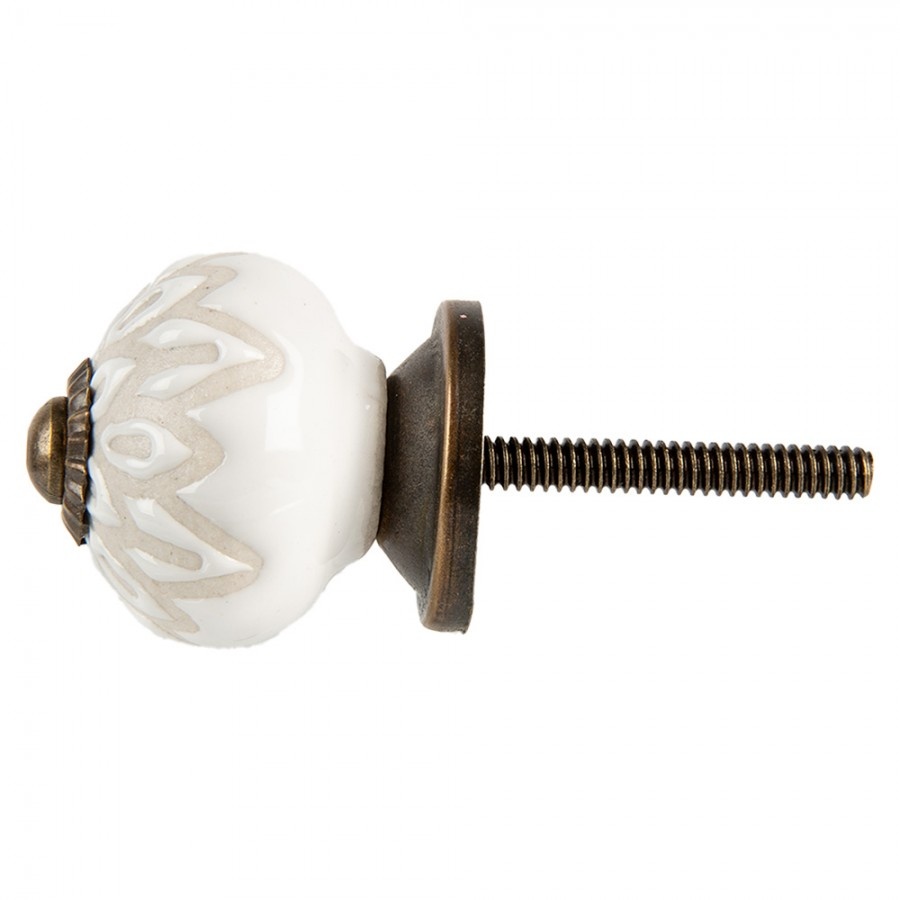Mooi klein deurknopje van Clayre en Eef versierd met creme kleurig bloemen reliëf; leuk voor een kast of commode in