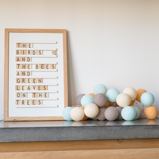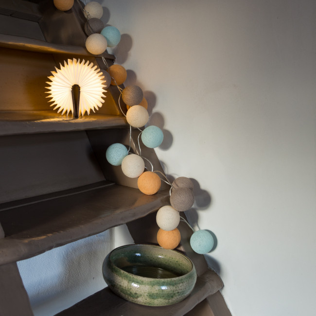 Breng sfeer en gezelligheid in de kinderkamer met deze prachtige lichtslinger van cotton ball lights geïnspireerd op de kleuren van het strand.