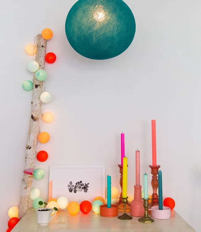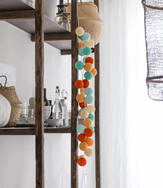 Breng sfeer en gezelligheid in de kinderkamer met deze prachtige lichtslinger van cotton ball lights geïnspireerd op de kleuren van een mooie zonsondergang.