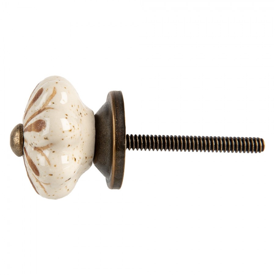 Clayre en Eef deurknopje bloem creme klein met bruin strepen patroon