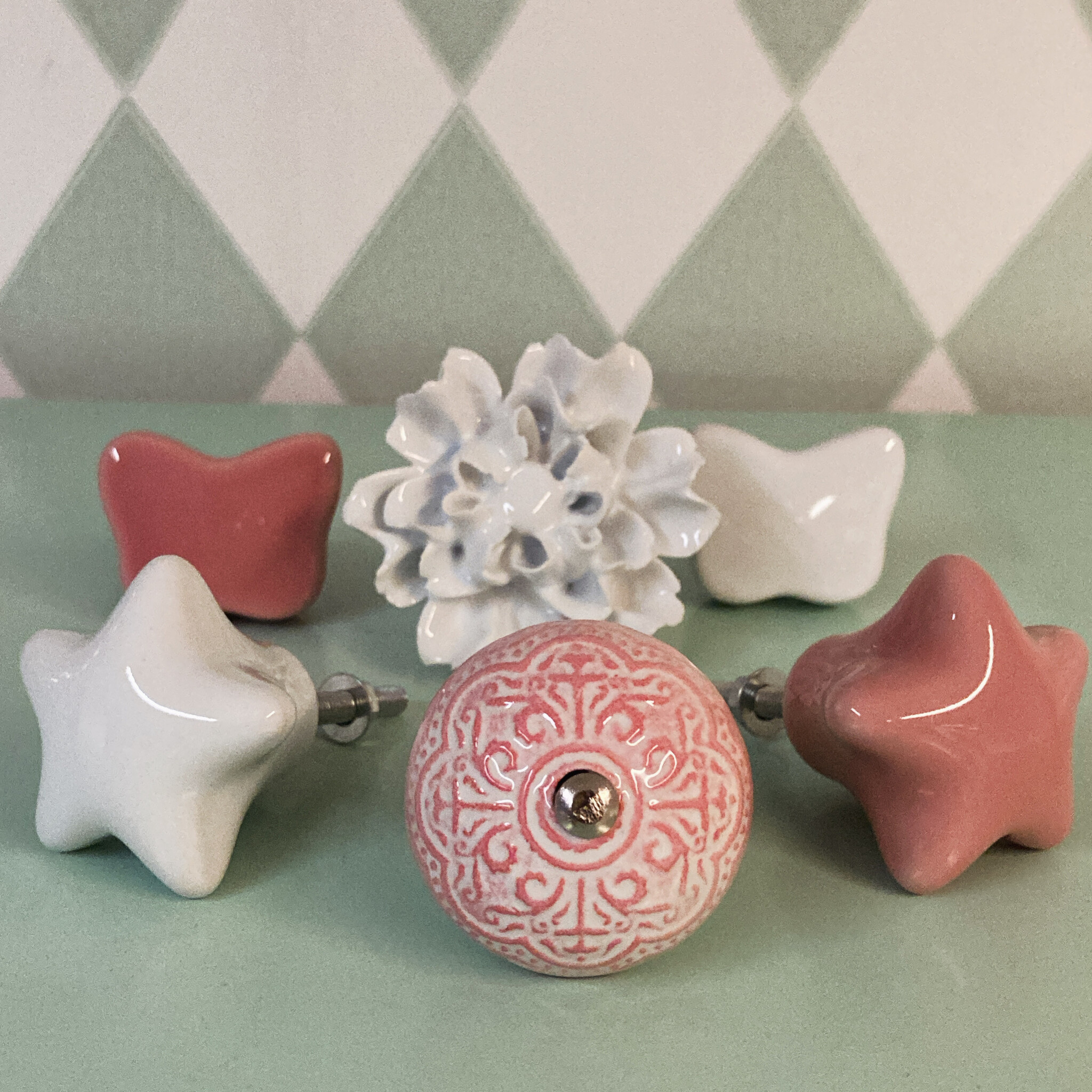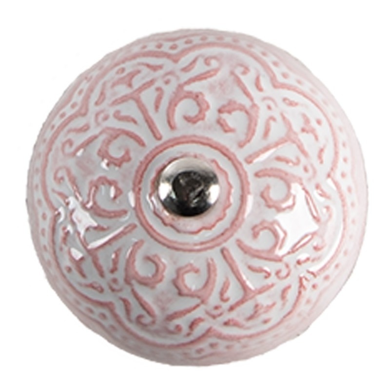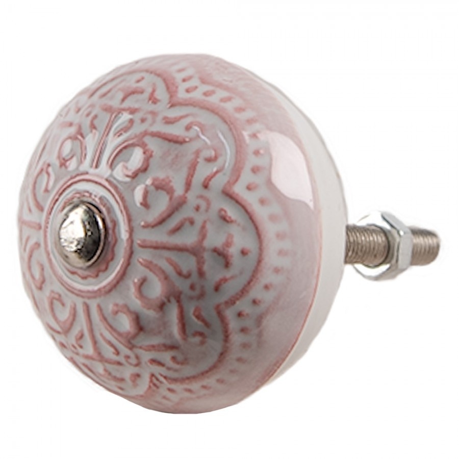 Clayre & Eef deurknop rond roze wit reliëf