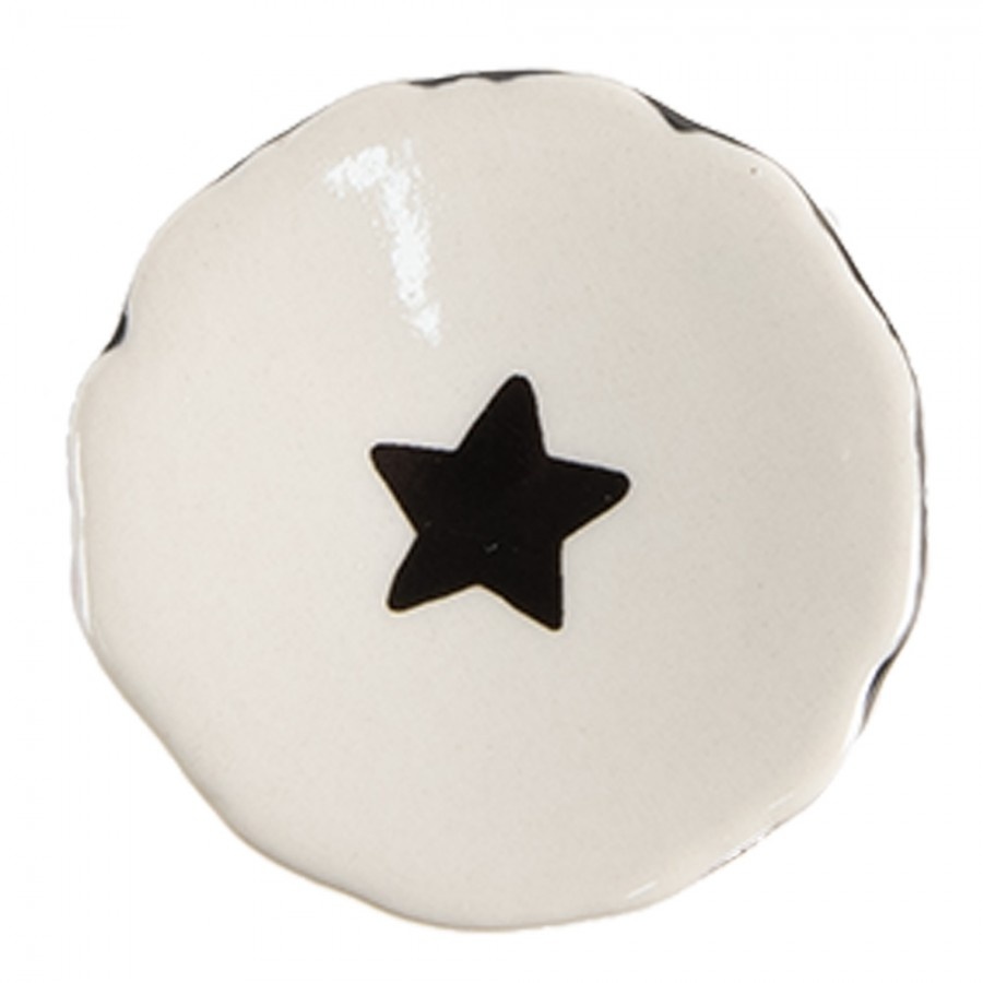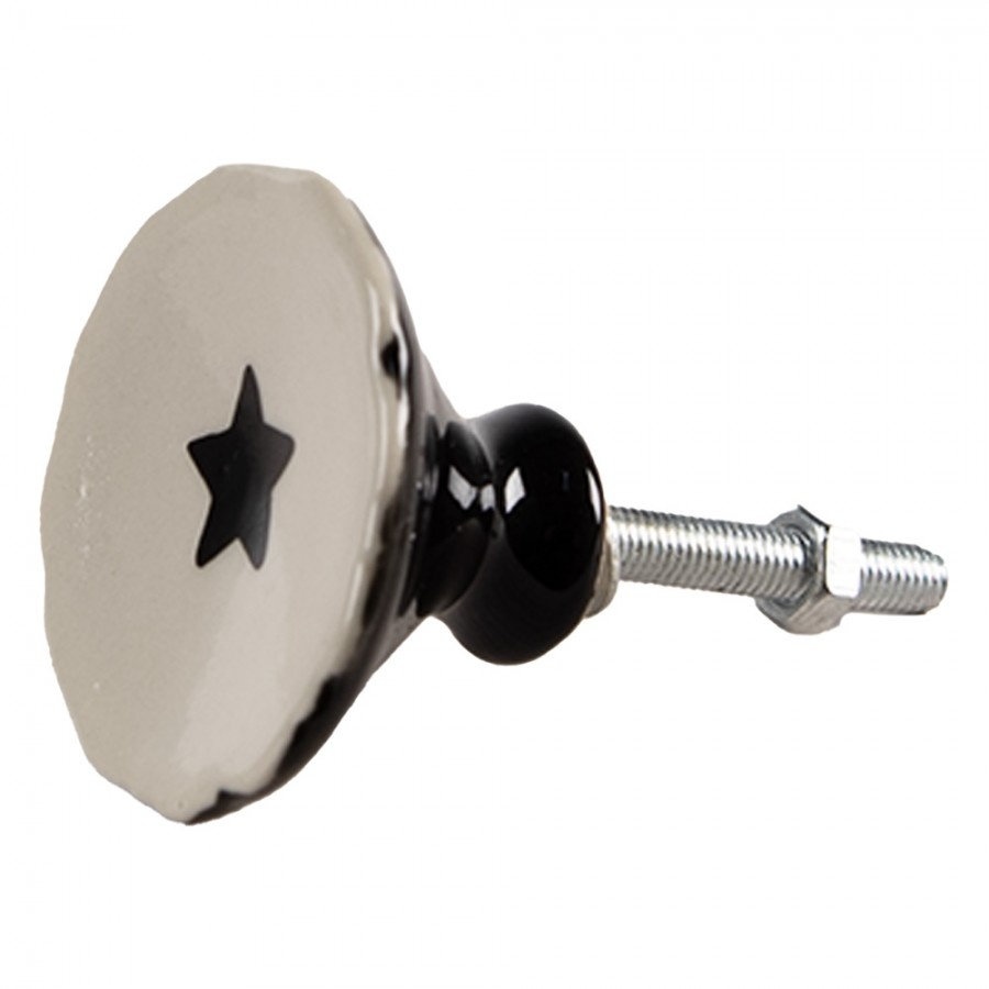 Mooi creme kleurig kastknopje versierd met een zwarte ster uit de prachtige deurknoppen collectie van Clayre & Eef; leuk te combineren met andere deurknopjes uit deze serie.