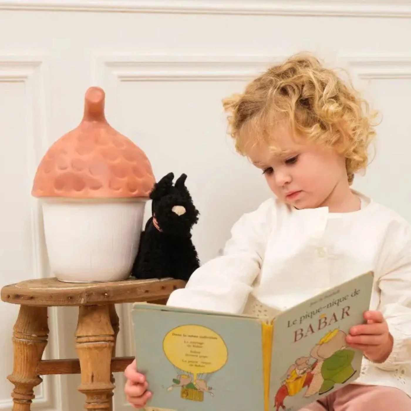 Haal de rust en sfeer van het bos naar de baby- of kinderkamer met de prachtige figuurlamp in de vorm van een eikel. Deze iconische lamp is een sfeervolle lichtbron voor 's avonds en perfect in een een natuur- of bosthema kamer.