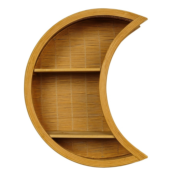 Breng warmte en charme in de kinderkamer met dit prachtige rotan wandrek in de vorm van een maan. Met zijn bohemian uitstraling en natuurlijke materialen is dit muurkastje van Kidsdepot een echte eyecatcher aan de muur.