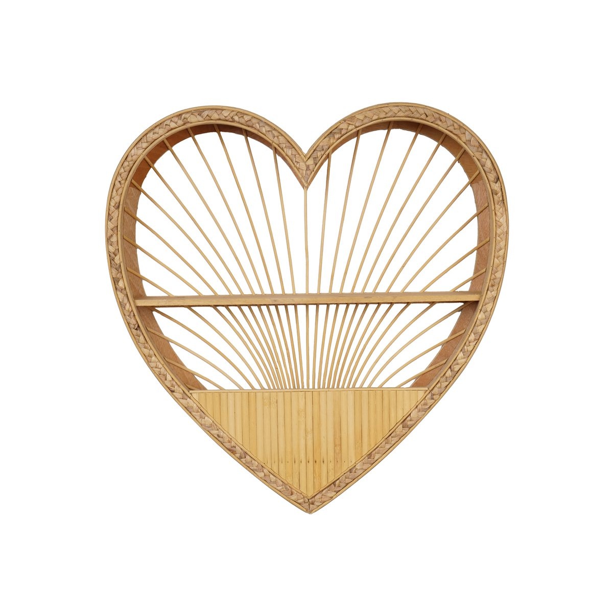 Breng warmte en charme in de kinderkamer met dit prachtige rotan wandrek in de vorm van een hartje. Met zijn bohemian uitstraling en natuurlijke materialen is dit muurkastje van Kidsdepot een echte eyecatcher aan de muur.