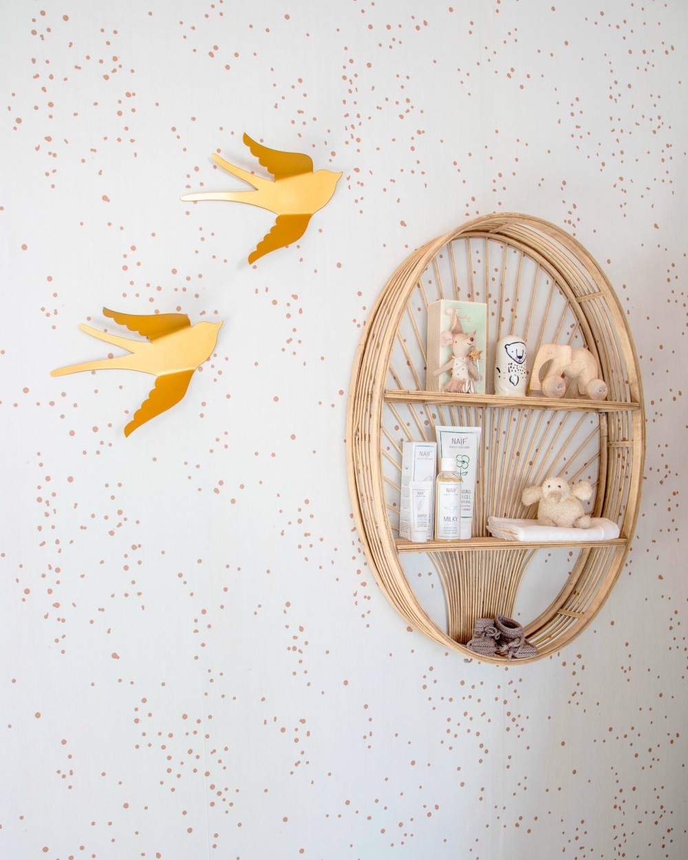 Mooi wandrekje van Kidsdepot gemaakt van rotan; leuk voor kleinere planten, een spaarpot of een nachtlampje.