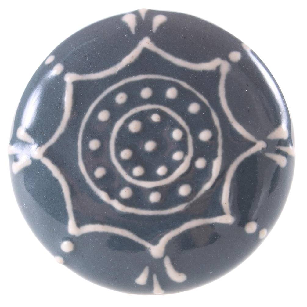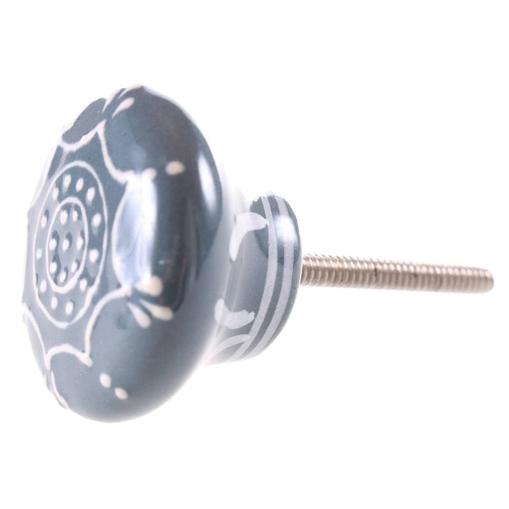 Het bijzondere van dit grijze deurknopje is, dat ook de zijkanten mooi beschilderd zijn.