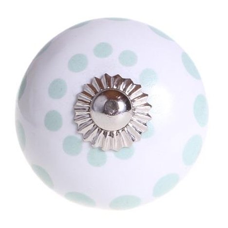 Deze mooie witte deurknop met mintgroen stippen patroon staat leuk in een hippe baby- of kinderkamer met pastel accenten.