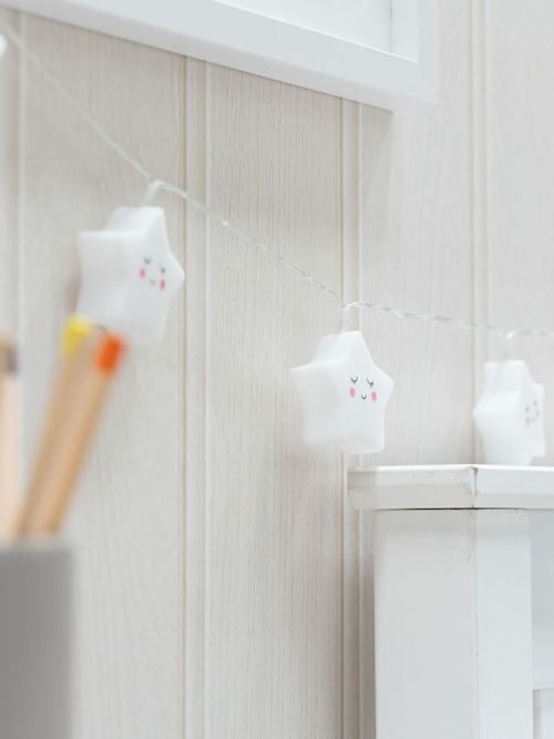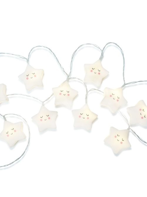 Breng sfeer en gezelligheid in de kinderkamer met deze schattige lichtslinger met slapende sterren. Het zachte, warme licht creëert een knusse uitstraling – perfect voor de baby- of kinderkamer, feestjes of als speelse decoratie in huis.
