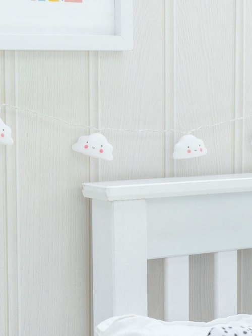 Breng sfeer en gezelligheid in de kinderkamer met deze schattige lichtslinger met lachende wolkjes. Het zachte, warme licht creëert een knusse uitstraling – perfect voor de baby- of kinderkamer, feestjes of als speelse decoratie in huis.