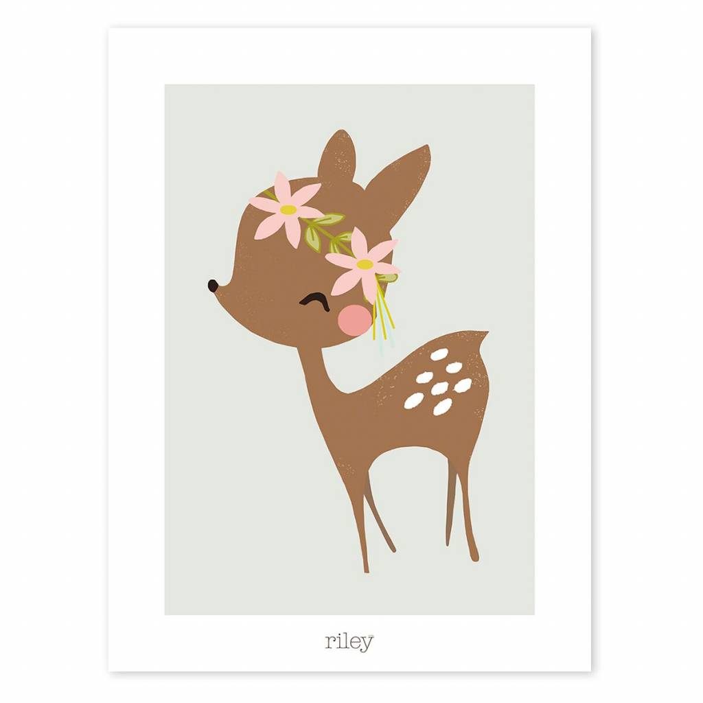 Deze mooie kinderposter van een schattig hertje met bloemenkrans brengt een vleugje nostalgie in de baby- of kinderkamer.