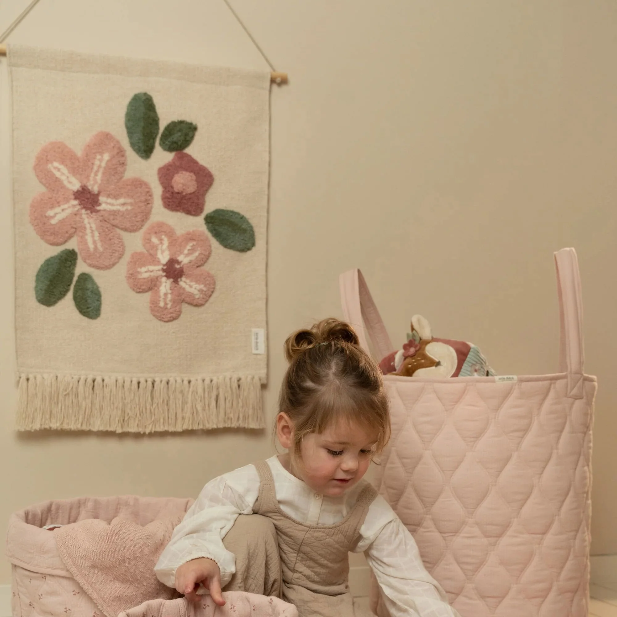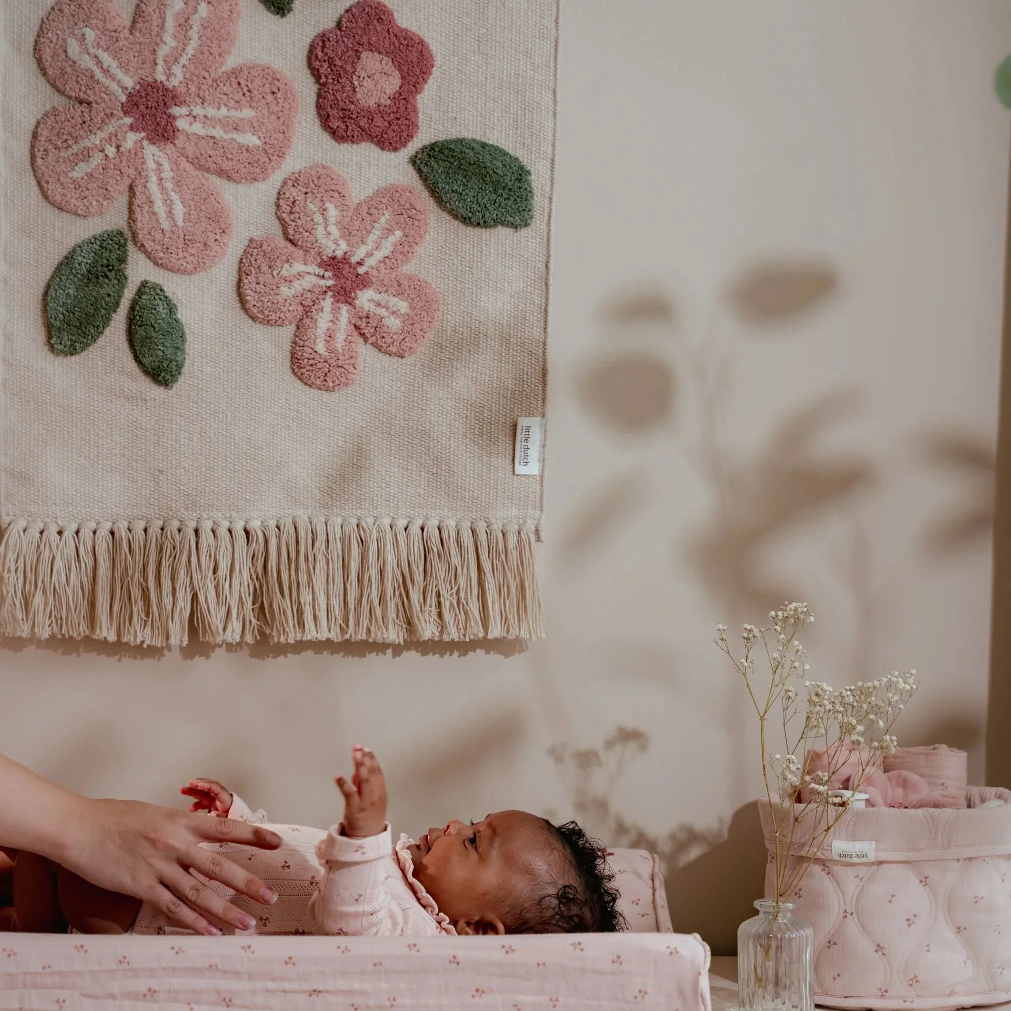 Breng warmte en gezelligheid in de kinderkamer met dit stijlvolle wandkleedje van Little Dutch. Het zachte roze bloemenmotief zorgt voor een lieflijke en rustgevende uitstraling, perfect voor boven het bedje, de commode of een knus hoekje in de kamer.