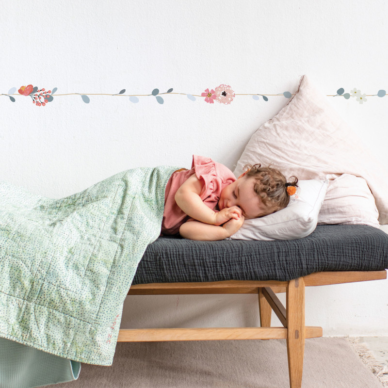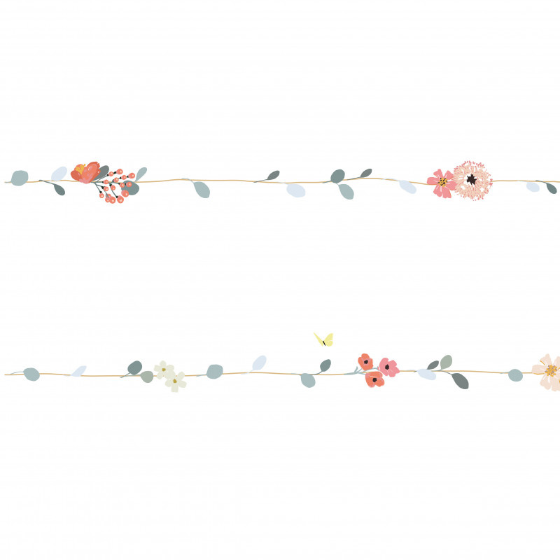 Geef de muur een zomerse uitstraling met deze leuke bloemen muursticker van het Franse merk Mimilou. U kunt zelf bepalen waar de bloemen en blaadjes geplakt worden op de muur.