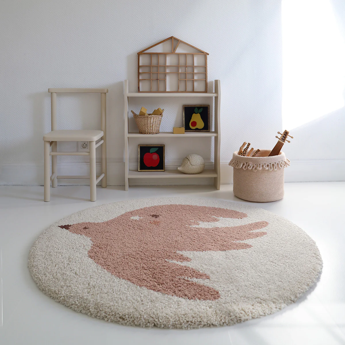 Nattiot vloerkleed kinderkamer rond vogel Bohemian Bird roze/creme