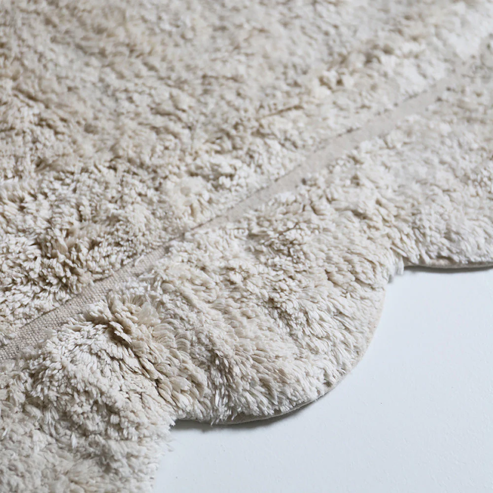 Dit prachtige ovale kindervloerkleed van het Franse merk Nattiot met golvende rand geeft de kinderkamer een elegante en tijdloze uitstraling; leuk voor en kinderkamer met natuurlijke kleuren.