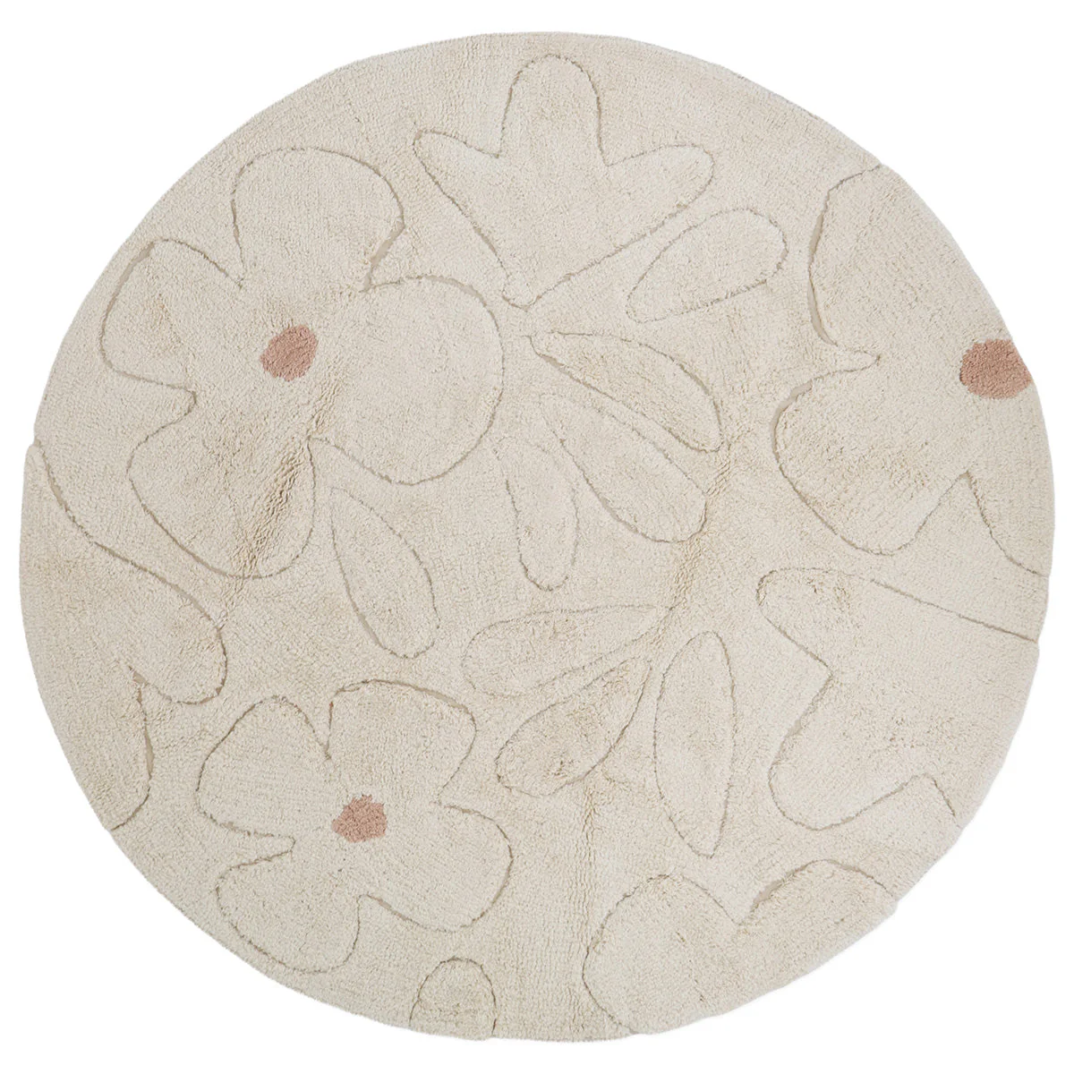 Nattiot vloerkleed kinderkamer bloemen Flora waarm wit rond