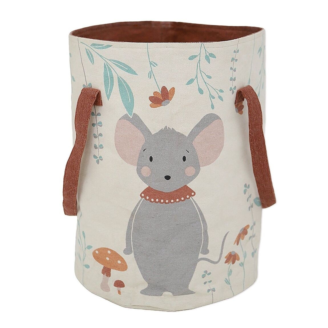 Deze prachtige opbergmand van Nattiot met een schattige kleine muis als motief omgeven door bloemen en groene planten geeft de kinderkamer een warme gezellige uitstraling en is leuk te combineren met andere dieren accessoires.