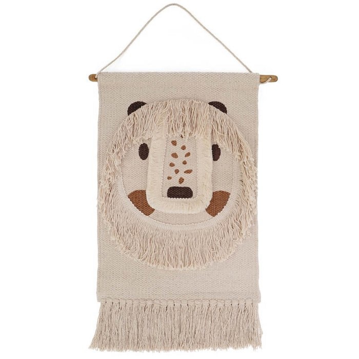 Prachtige muurdecoratie met een leeuw motief in boho stijl; erg leuk voor een baby- of kinderkamer met natuurlijke kleuren.