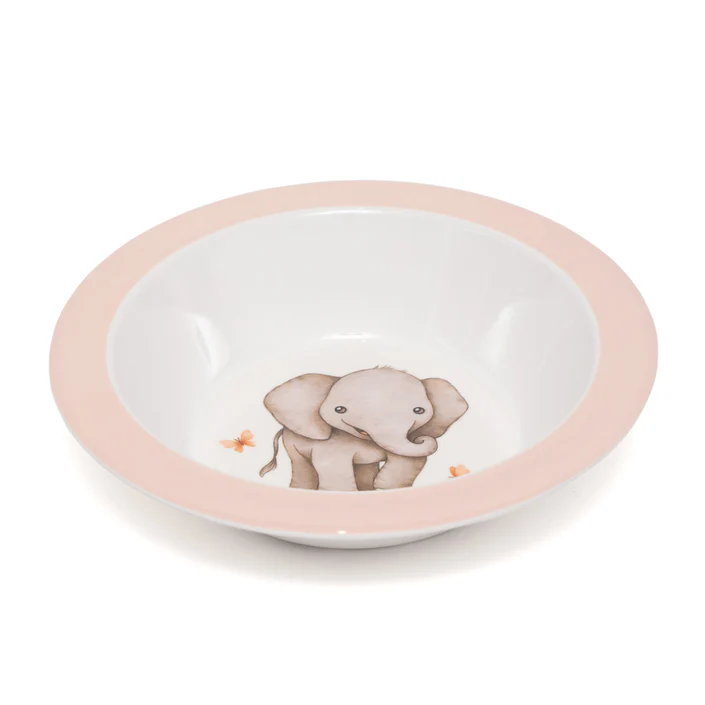 Mooi melamine schaaltje met een schattig olifanten motiefje aan de binnenkant ontworpen door Nina Stanjer; leuk te combineren met de kinderbekers en bordjes uit deze melamine serie van Petit Monkey.