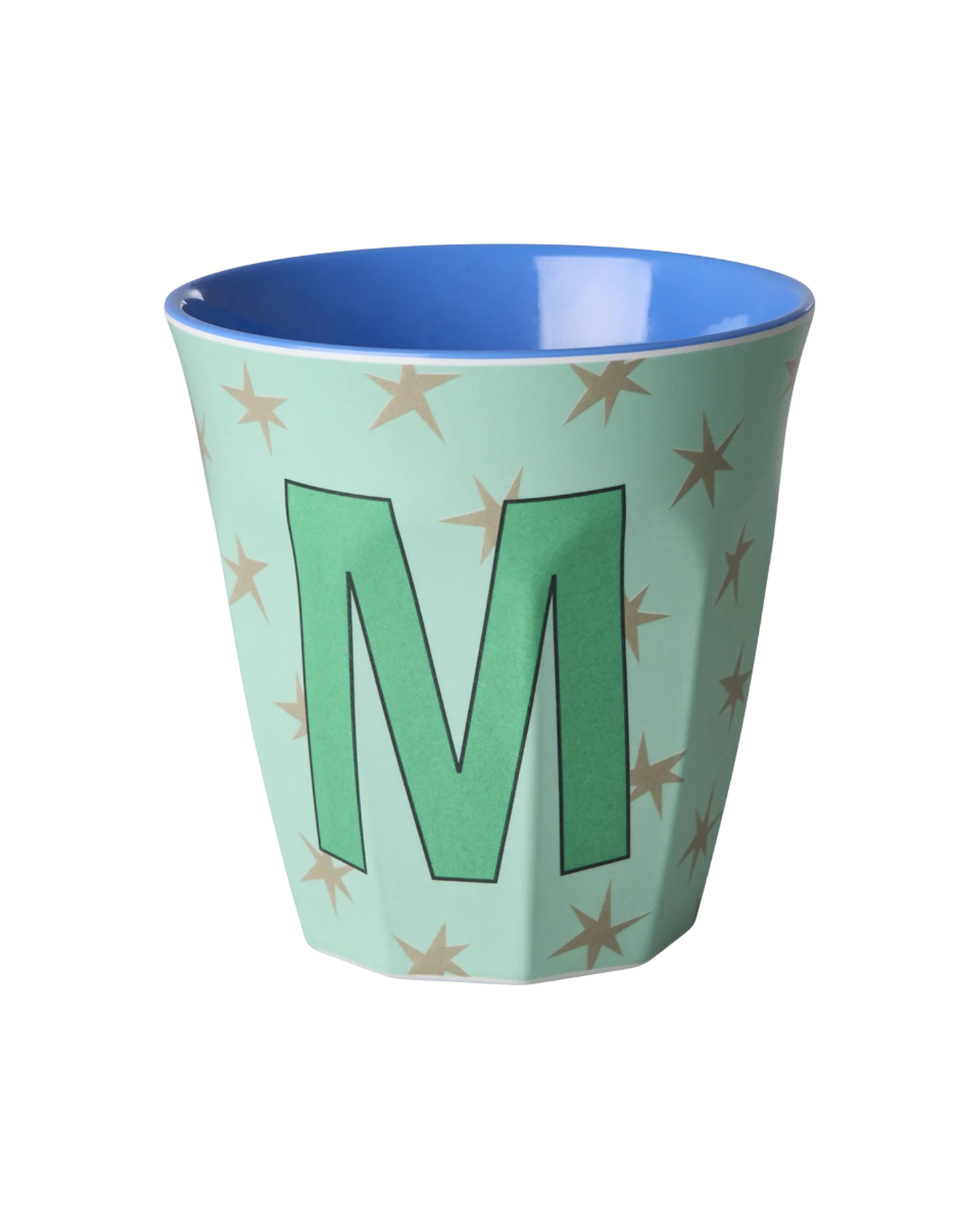 Rice melamine alfabet beker letter M medium sterren blauw groen