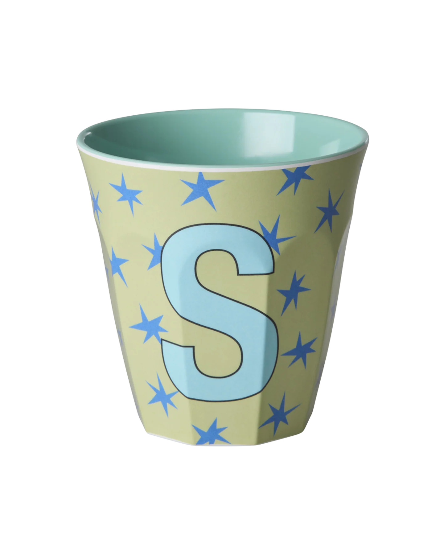 Rice melamine alfabet beker letter S medium sterren blauw groen