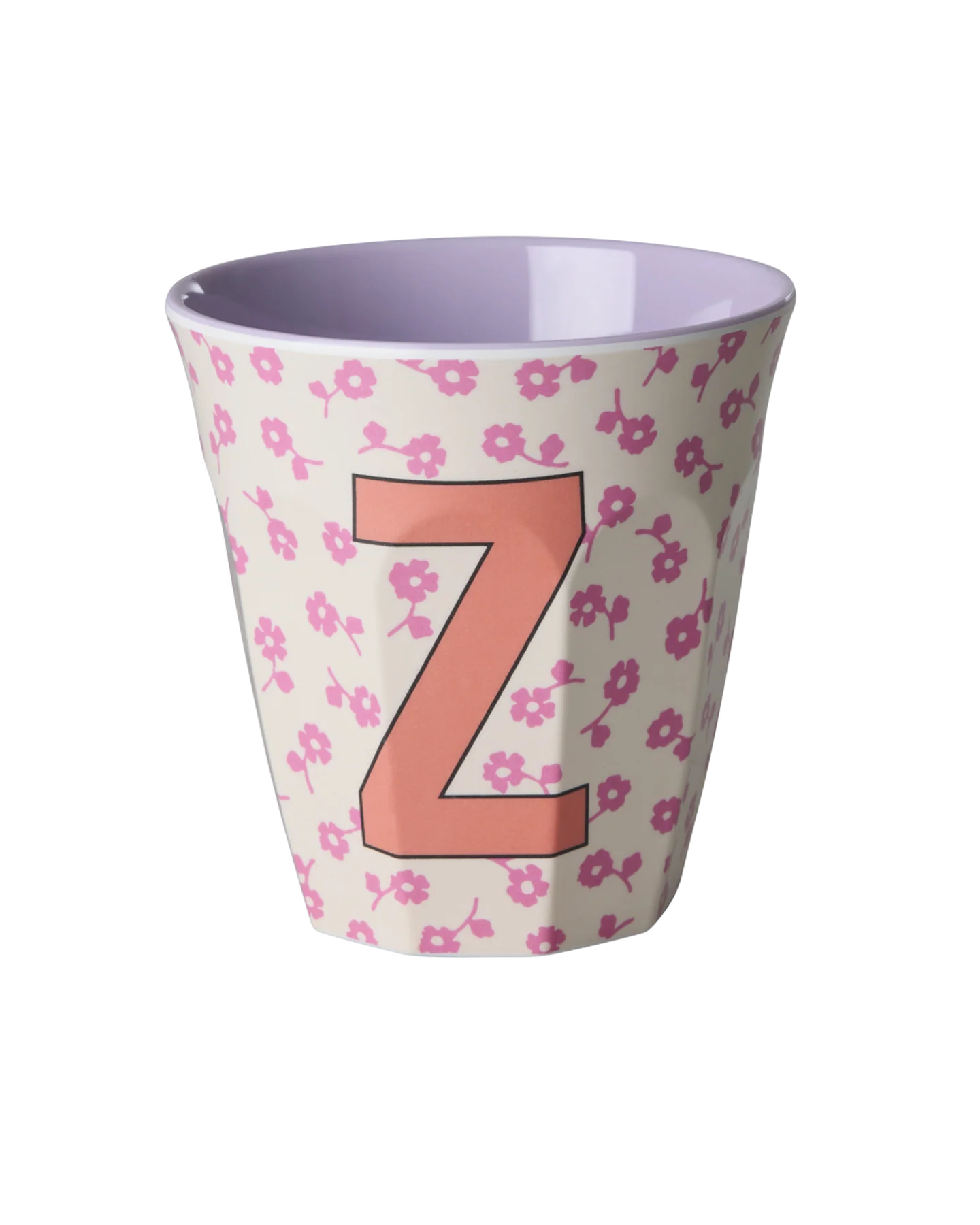 Vrolijke alfabet beker van Rice Denemarken versierd met de letter Z en fleurige bloemenmotiefjes. Stevig, licht en ideaal voor dagelijks gebruik, kinderfeestjes, uitjes en picknicks.