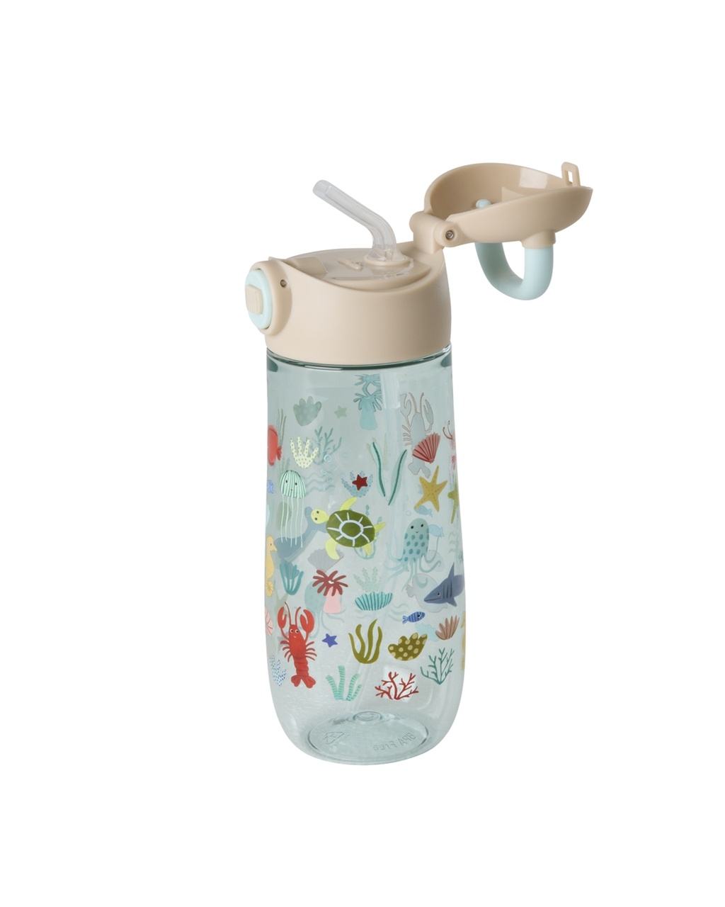 Prachtige drinkbeker versierd met kleurrijke zeedieren, makkelijk te openen ook voor kleine handjes. De drinkbeker heeft ook een handig rietje, die tevoorschijn komt als je de deksel opent. Leuk te combineren met het Ocean kinderservies van Rice.