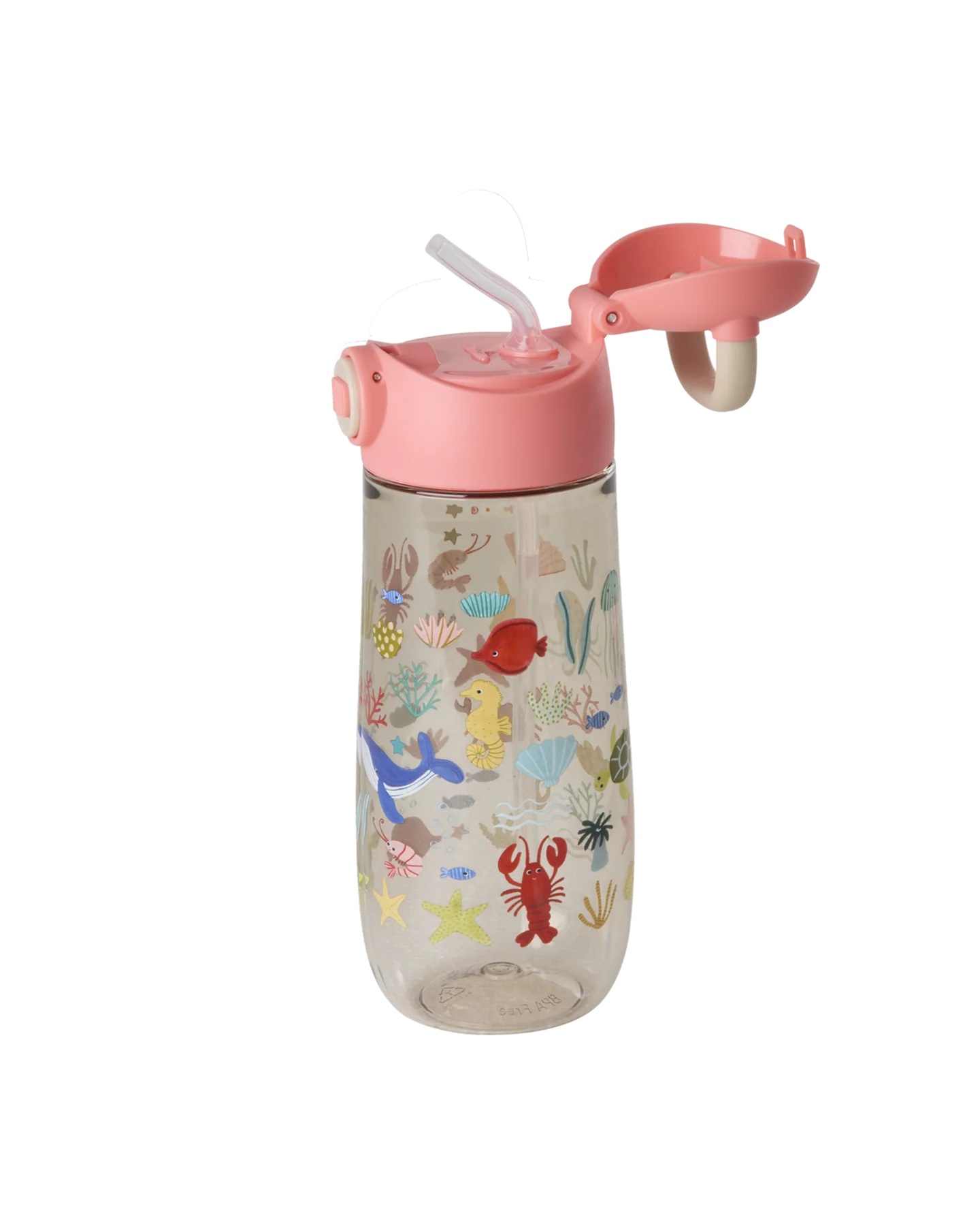 Prachtige drinkbeker versierd met kleurrijke zeedieren, makkelijk te openen ook voor kleine handjes. De drinkbeker heeft ook een handig rietje, die tevoorschijn komt als je de deksel opent. Leuk te combineren met het Ocean kinderservies van Rice.