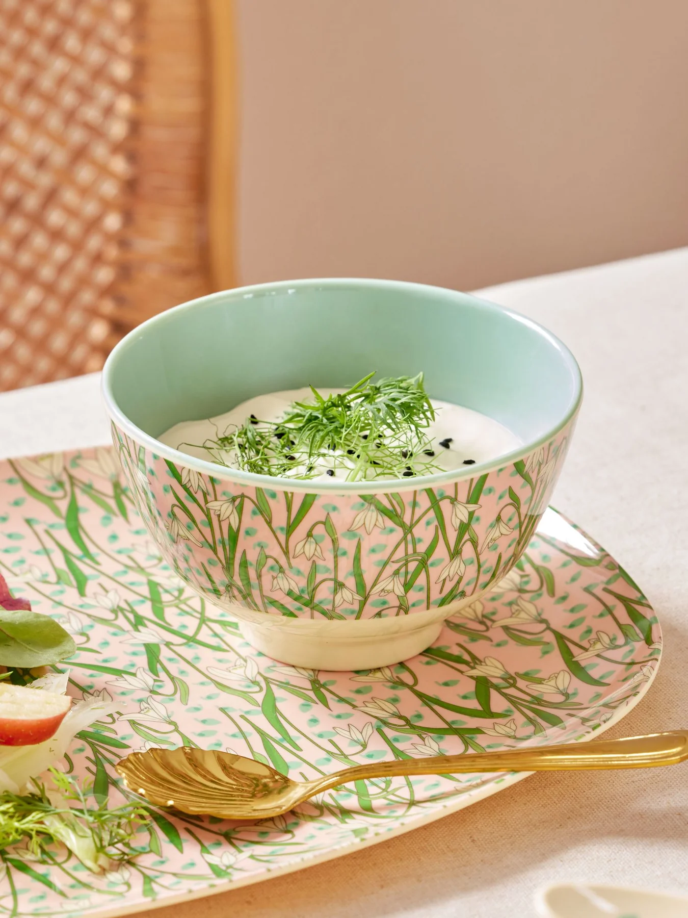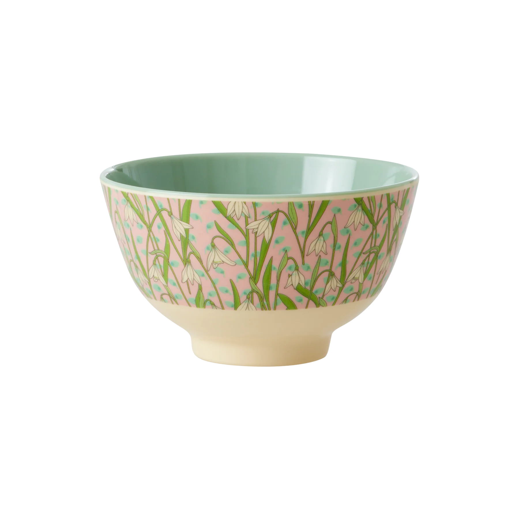 Fleur de eettafel op met deze vrolijke kleine schaaltjes van Rice versierd met sierlijke sneeuwklokjes en een groene binnenkant; erg leuk te combineren met andere kinderservies items van dit mooie merk.