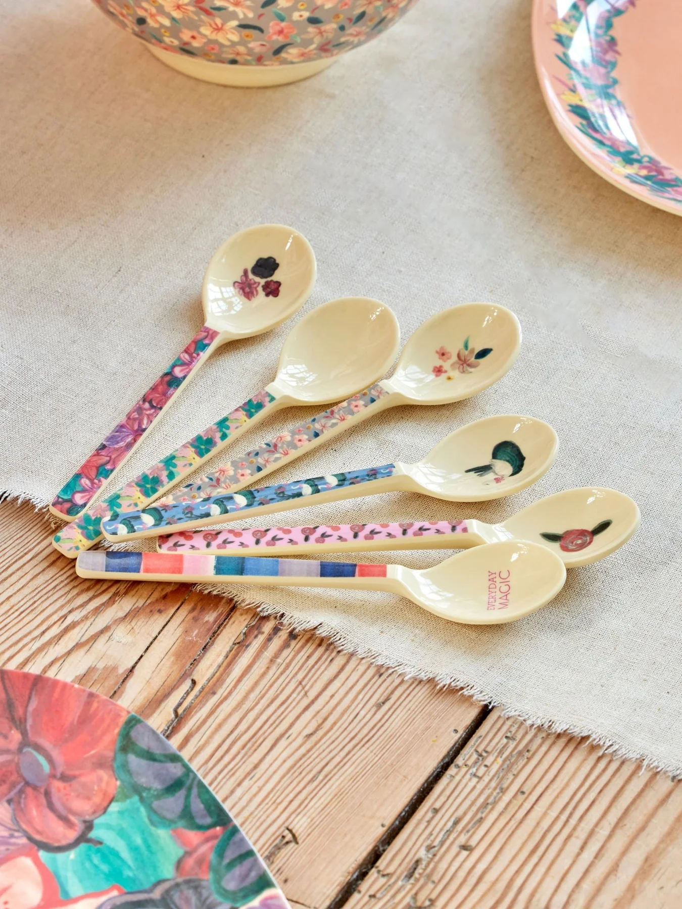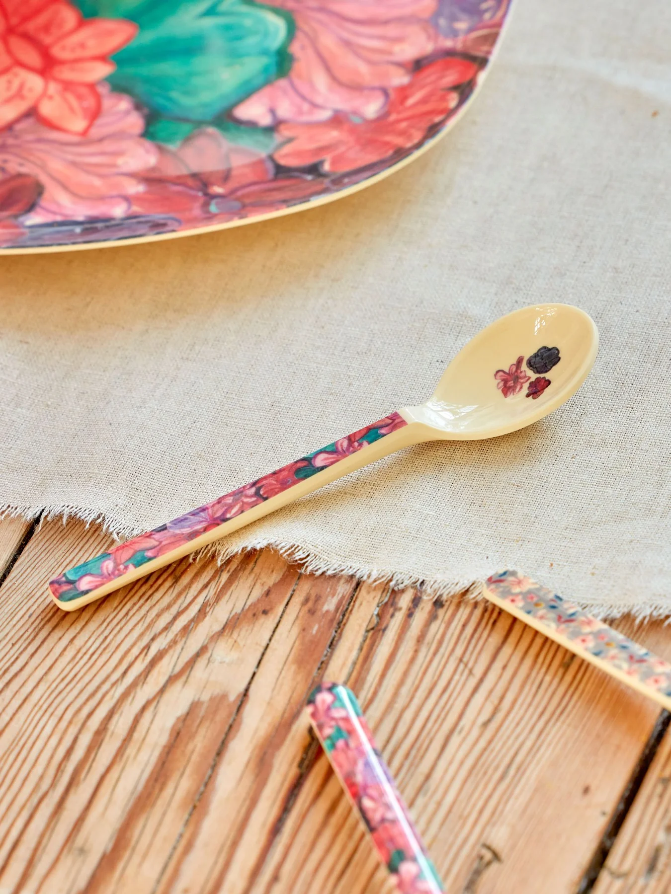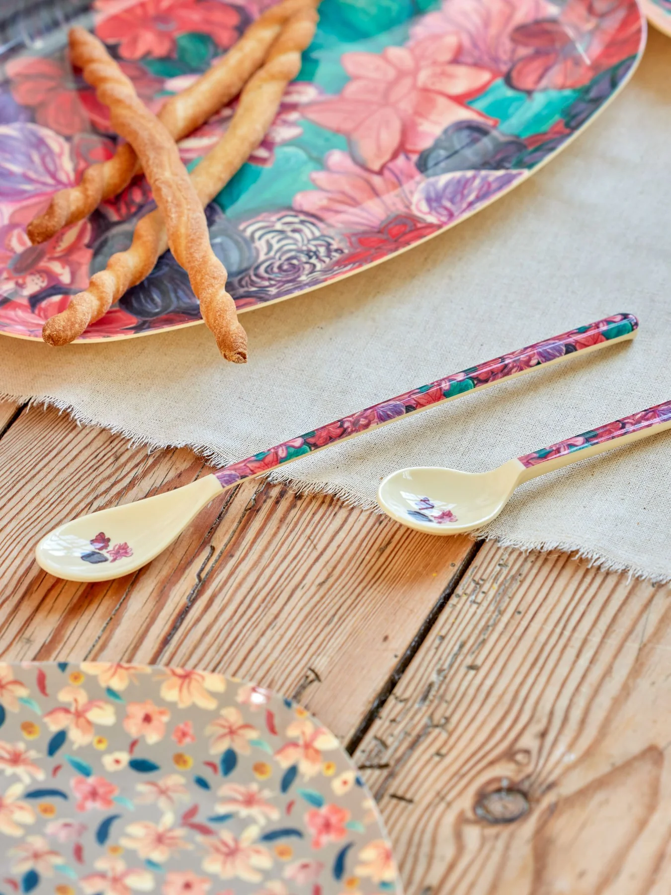 Mooie theelepel versierd met prachtige bloemen motiefjes uit de A New York Minute collectie van Rice; leuk te combineren met andere melamine servies items uit deze serie.