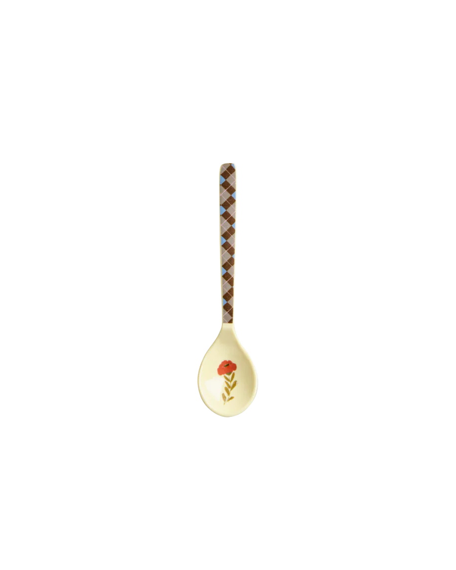 Mooie theelepel uit de All You Need is Love collectie van Rice versierd met een blauw-bruin ruitjes patroon en een prachtige bloem; leuk te combineren met andere servies items uit deze collectie.
