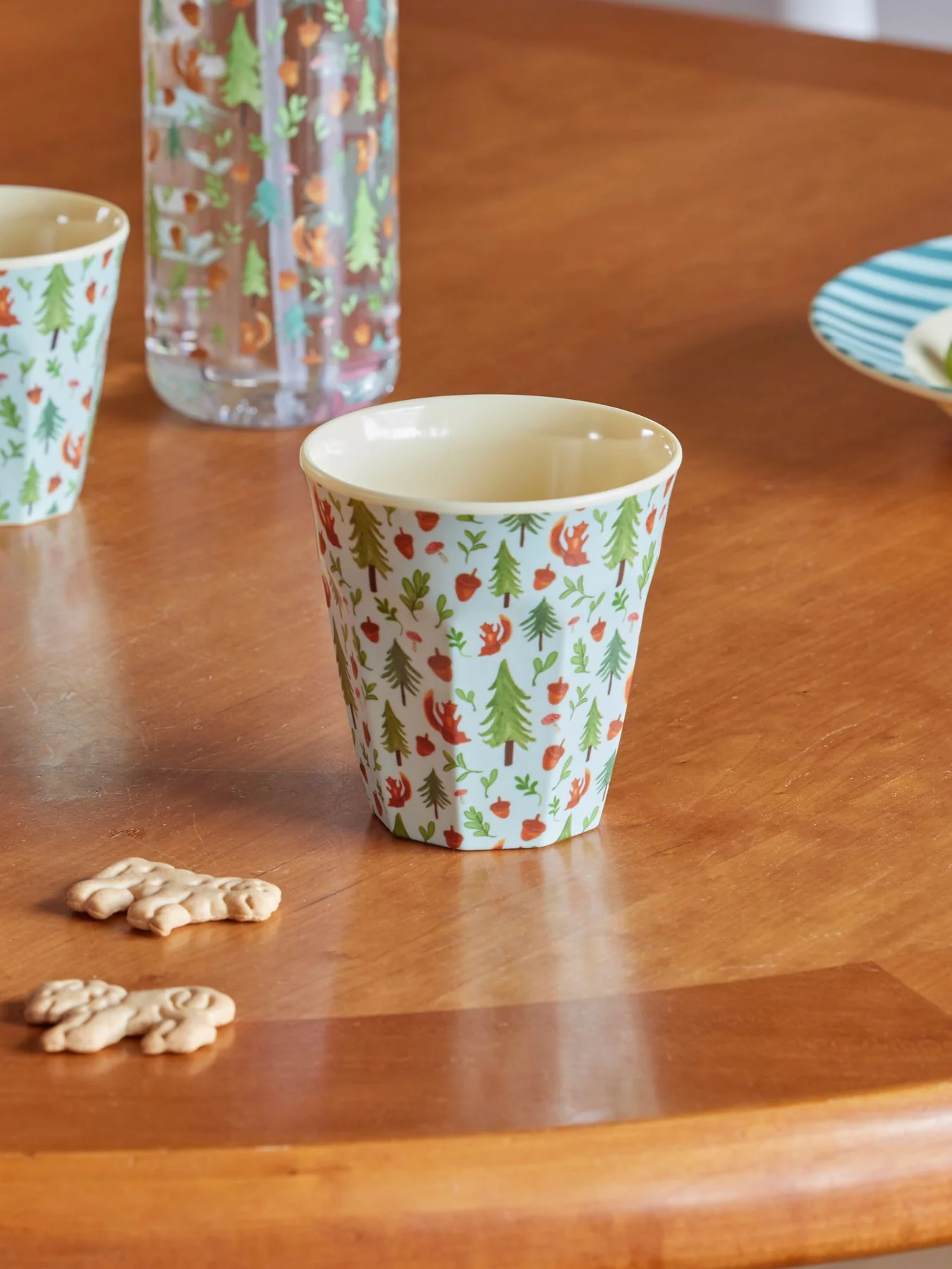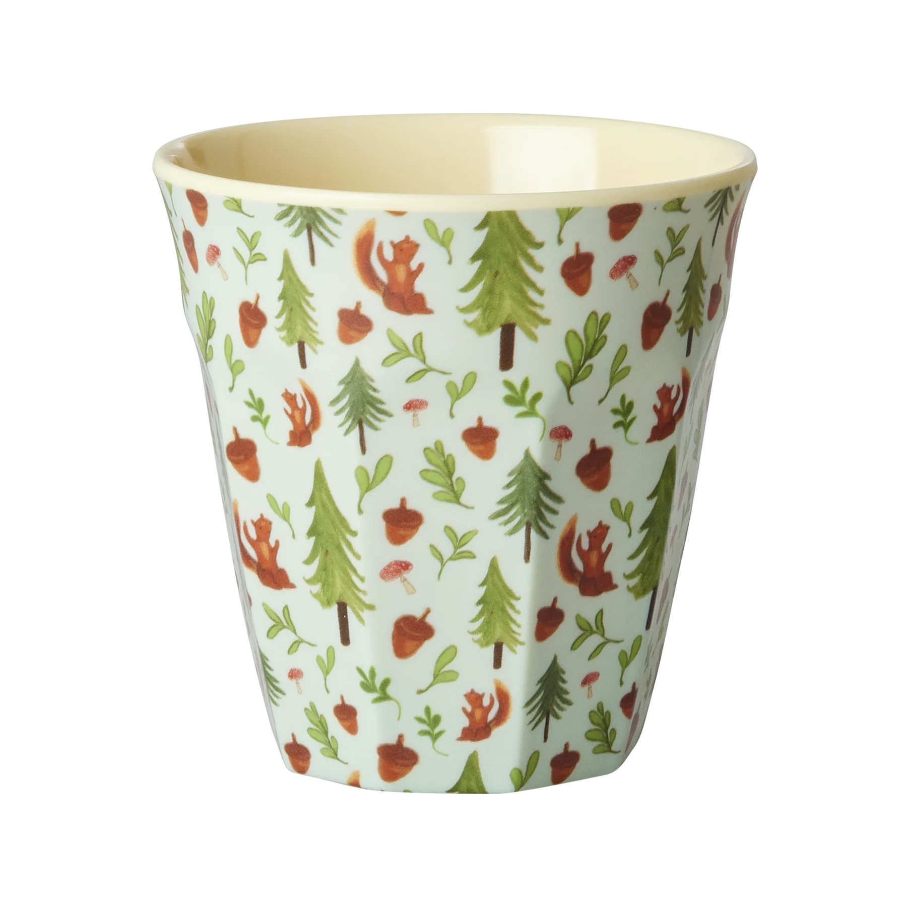 Mooie melamine beker versierd met eekhoorns, bomen en eikels, uit de Happy Forest collectie van het Deense merk Rice; erg leuk voor en kinderfeestje of picknick. Maak een compleet kinderserviesje met de bijhorende kinderborden en schaaltjes.