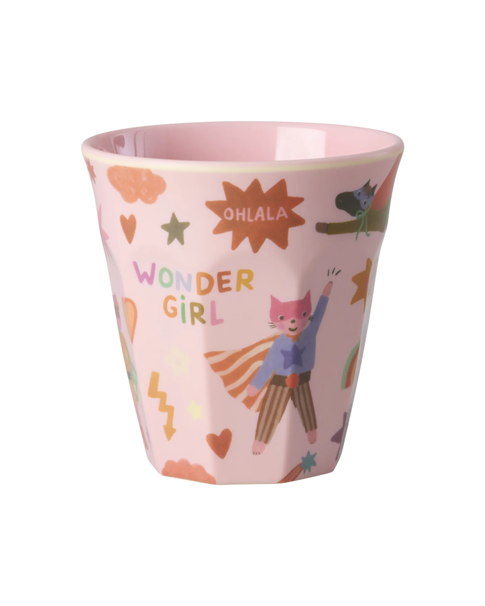 Fantasievolle melamine beker versierd met kleurrijke dieren superhelden illustraties uit de Hero collectie van het Deense merk Rice; erg leuk voor en kinderfeestje of picknick. Maak een compleet kinderserviesje met de bijhorende kinderborden en schaaltjes