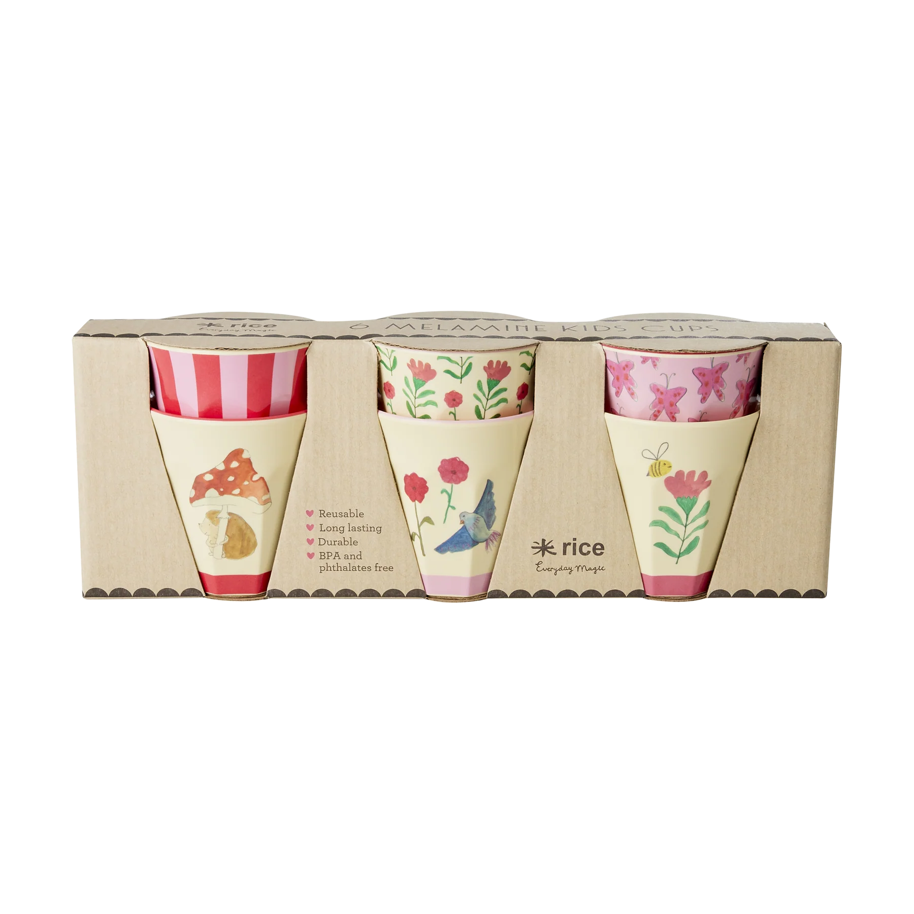 Prachtig setje kinderbekers met verschillende schattige bosdieren prints; leuk te combineren met andere kinderservies items uit de Happy Forest collectie van Rice.