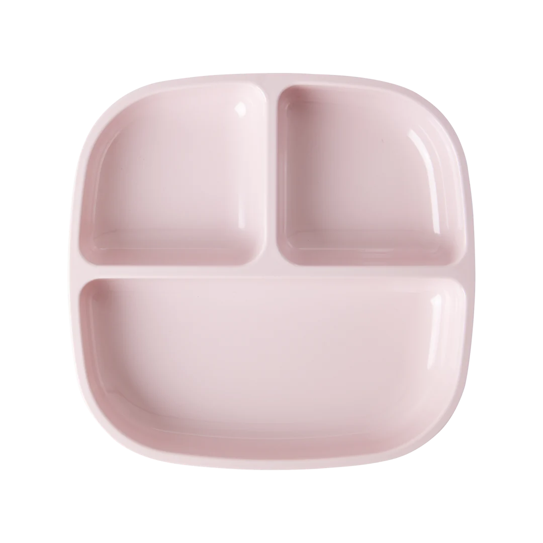 Mooi en handig kinderbord van Rice met drie vakjes in een zachte lichtroze kleur, ook verkrijgbaar in verschillende andere kleuren en leuk te combineren met andere eenkleurige melamine servies items van dit prachtige merk.