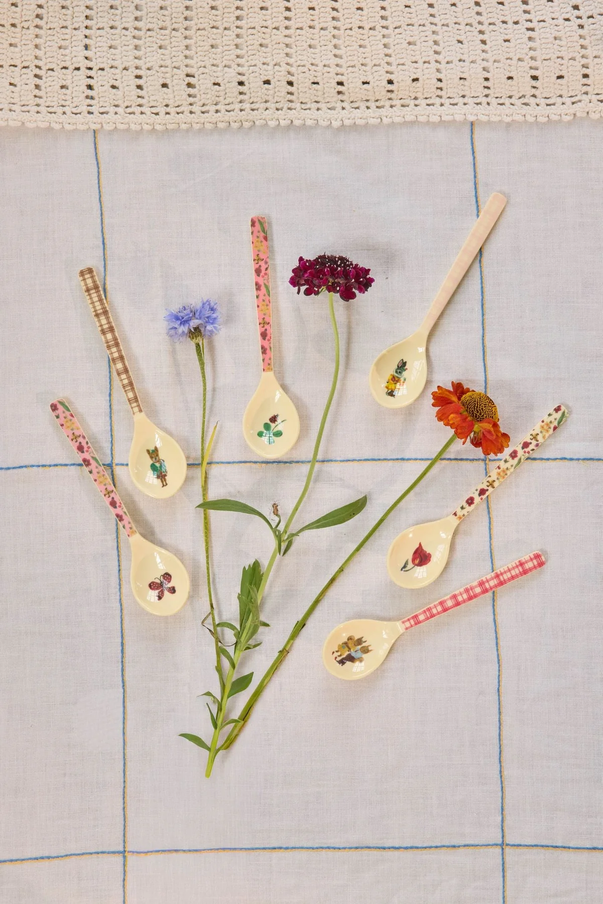 Mooie theelepel met kleurrijke bloemen motiefjes door de Franse illustratrice Nathalie Lété, erg leuk te combineren met de bijpassende bordjes, schaaltjes en bekers van Rice.