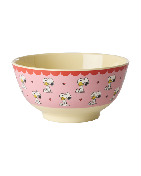 Stijlvol en schattig: dit geweldige Snoopy schaaltje brengt kleur aan tafel. Uitgevoerd in zachtroze met een liefdevol design van Snoopy en Woodstock omringd door hartjes. Een vrolijke toevoeging aan je serviesset.