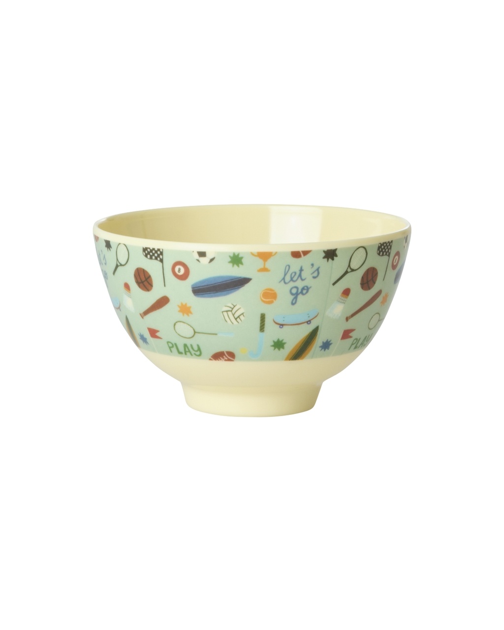 Dit is het perfecte schaaltje voor alle kleine sport fans, versierd met motiefjes van verschillende sporten zoals ballen, rackets en surfboarden; ideaal voor fruithapjes, snacks en toetjes.