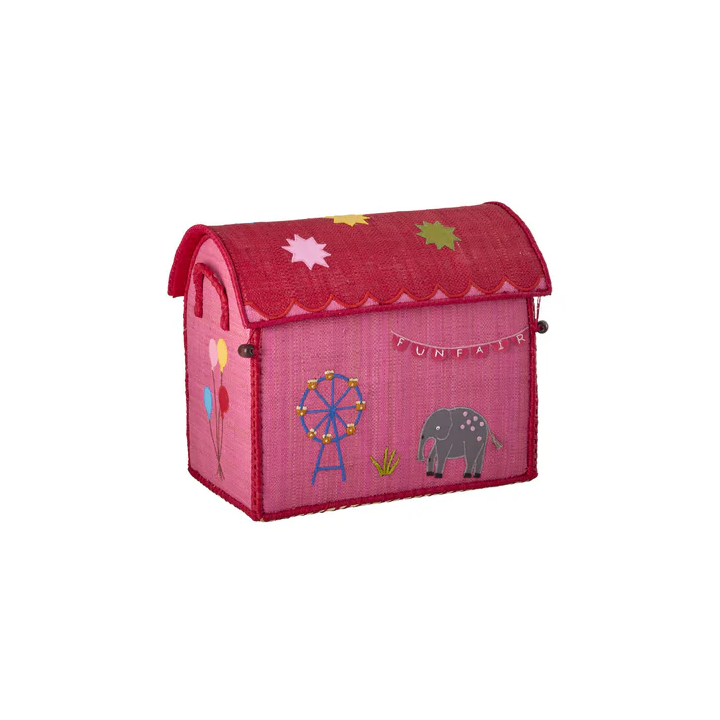 Breng een vleugje kermisplezier in de kinderkamer met deze prachtige handgemaakte speelgoedmand van RICE! Deze unieke mand is versierd met een reuzenrad en een schattige olifant – een speels ontwerp dat perfect past in een fantasierijke speelomgeving.