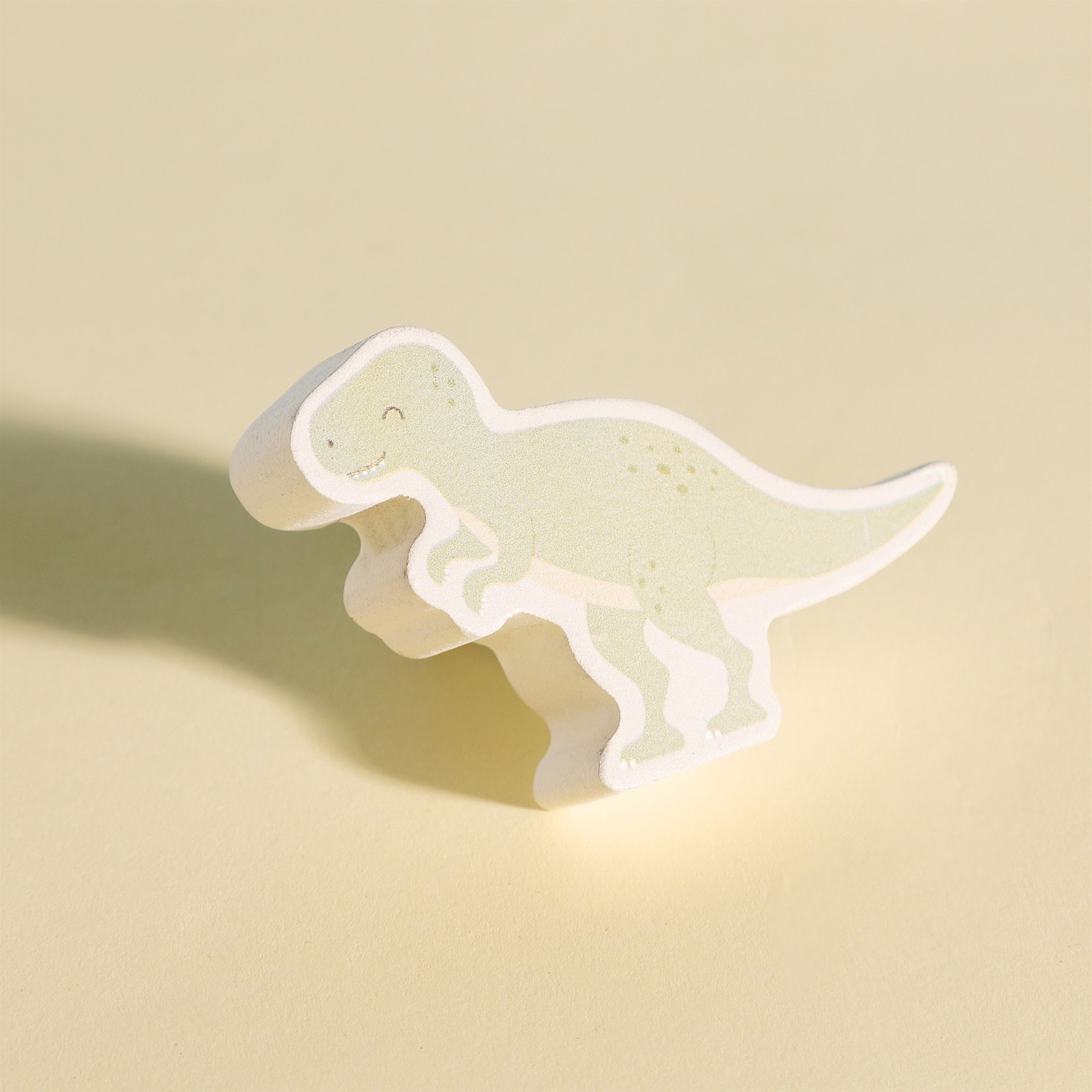 Mooi houten deurknopje in de vorm van een T-Rex uit de desert dino collectie van Sass & Belle; leuk te combineren met andere dino kinderkamer accessoires.