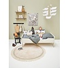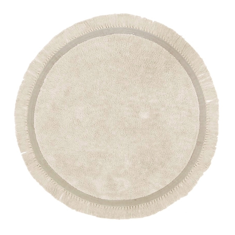 Dit mooie ronde vloerkleed van Tapis Petit, versierd met beige franjes, brengt sfeer en warmte in de kinderkamer; leuk voor en baby- of kinderkamer met natuurlijke kleuren of bohemian stijl.